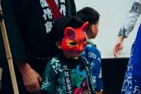 少しつかれたお面の少年
