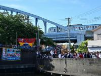 猫実一丁目の人の海に入る船(神輿)の行列