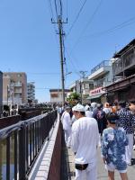 猫実一丁目の人の海に入る船(神輿)の行列